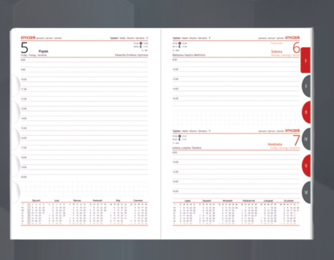 Układ: dzień na stronie, sobota i niedziela na jednej stronie